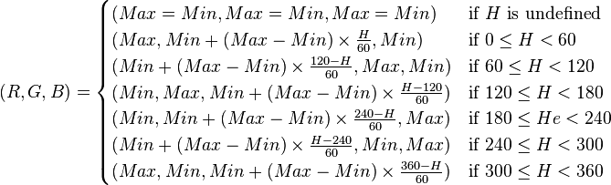 HSL → RGB 変換式 / Wikipedia